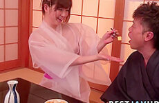 Two sexy lesbian Jap women in nylon stockings get all rainy and sexy in mattress